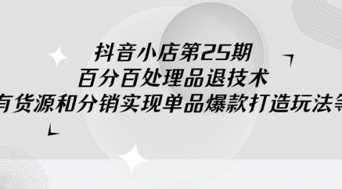 抖音小店-第25期,百分百处理品退技术,有货源和分销实现单品爆款打造玩法