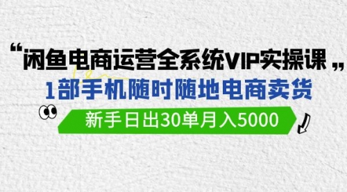 闲鱼电商运营全系统VIP实战课,1部手机随时随地卖货,新手日出30单月入5000