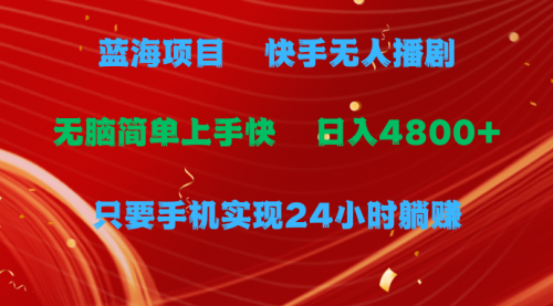 快手无人播剧,一天收益4800+,手机也能实现24小时躺赚