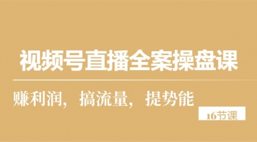 视频号直播全案操盘课,赚利润,搞流量,提势能(16节课)