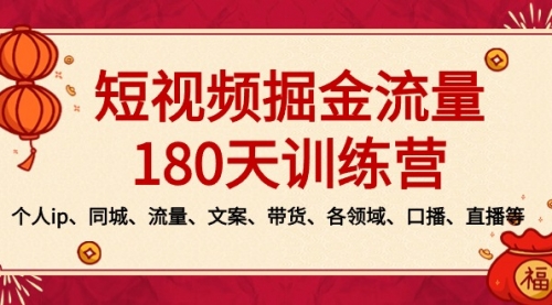 短视频-掘金流量180天训练营,个人ip、同城、流量、文案、带货、各领域