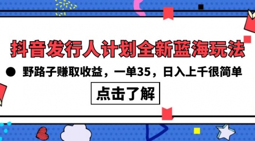 抖音发行人计划全新蓝海玩法,野路子赚取收益,一单35