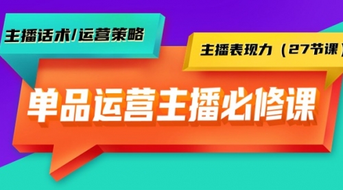 单品运营实操主播必修课:主播话术/运营策略/主播表现力(27节课)