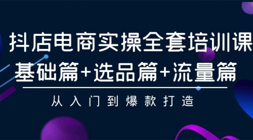 抖店电商实操全套培训课:基础篇+选品篇+流量篇,从入门到爆款打造