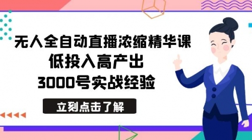 最新无人全自动直播浓缩精华课,低投入高产出,3000号实战经验