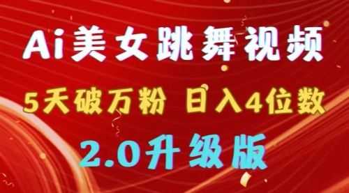 靠Ai美女跳舞视频,5天破万粉,日入4位数,多种变现方式,升级版2.0