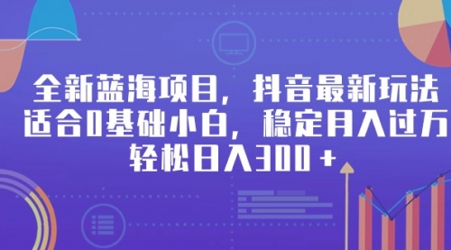 全新蓝海项目,抖音最新玩法,适合0基础小白,稳定月入过万,轻松日入300+