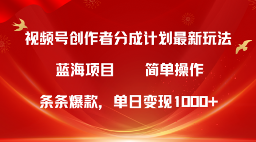 视频号创作者分成5.0,最新方法,条条爆款,简单无脑,单日变现1000+