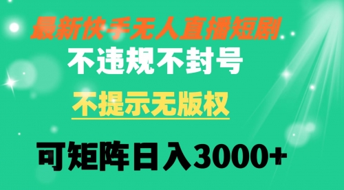 快手无人直播短剧不违规不提示无版权可矩阵操作轻松日入3000+